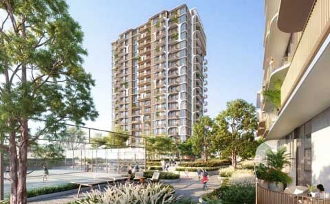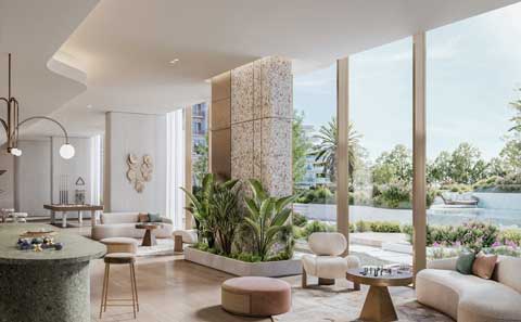 - Island city living in Downtown Mina, offering studios to 4BR penthouses starting from AED 0.8M, with handover in Q1 2029.